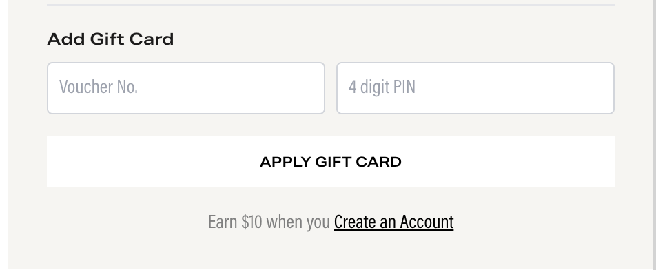 In order to redeem a Gift Card to make an online purchase, simply navigate to the 'My Bag' page, and enter your Gift Card details under the Order Summary section (see below).